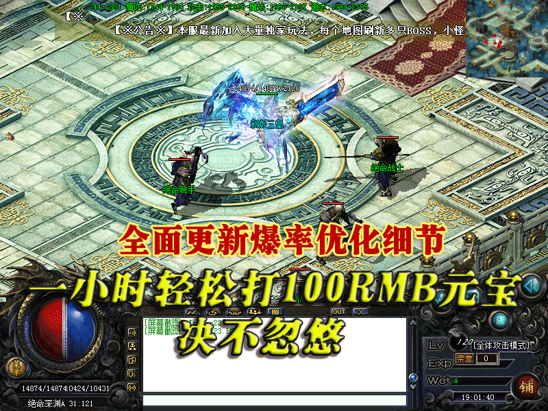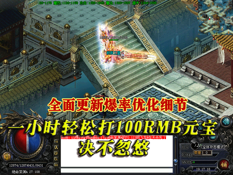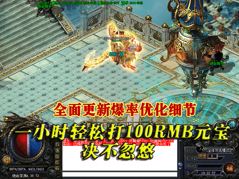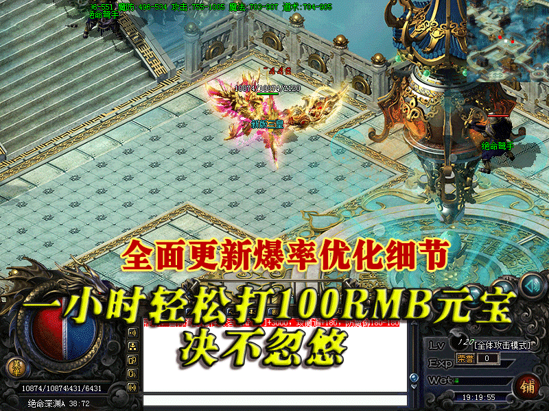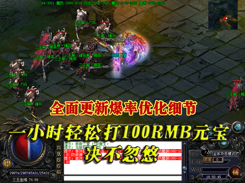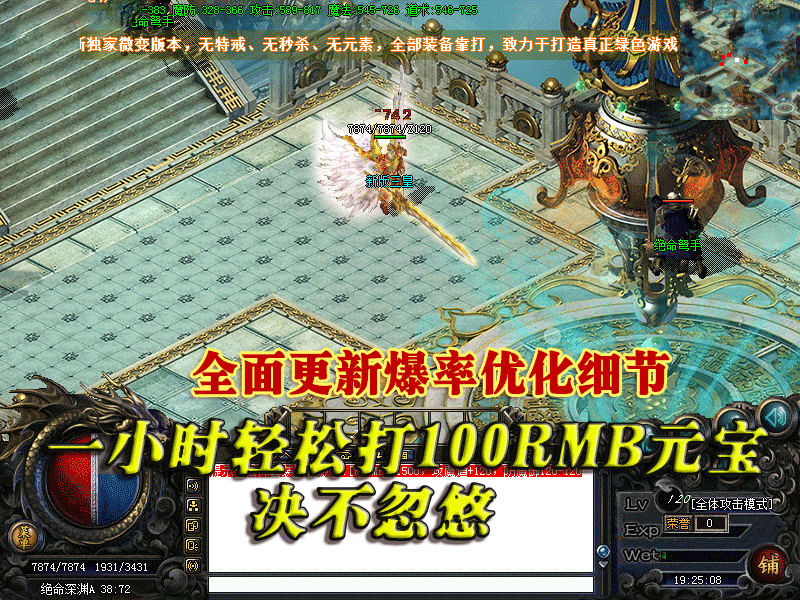 【版本介绍】:独家制作,装备好爆,元宝好打,回收比例高,所有地图爆RMB累计充值回馈,根本停不下来!